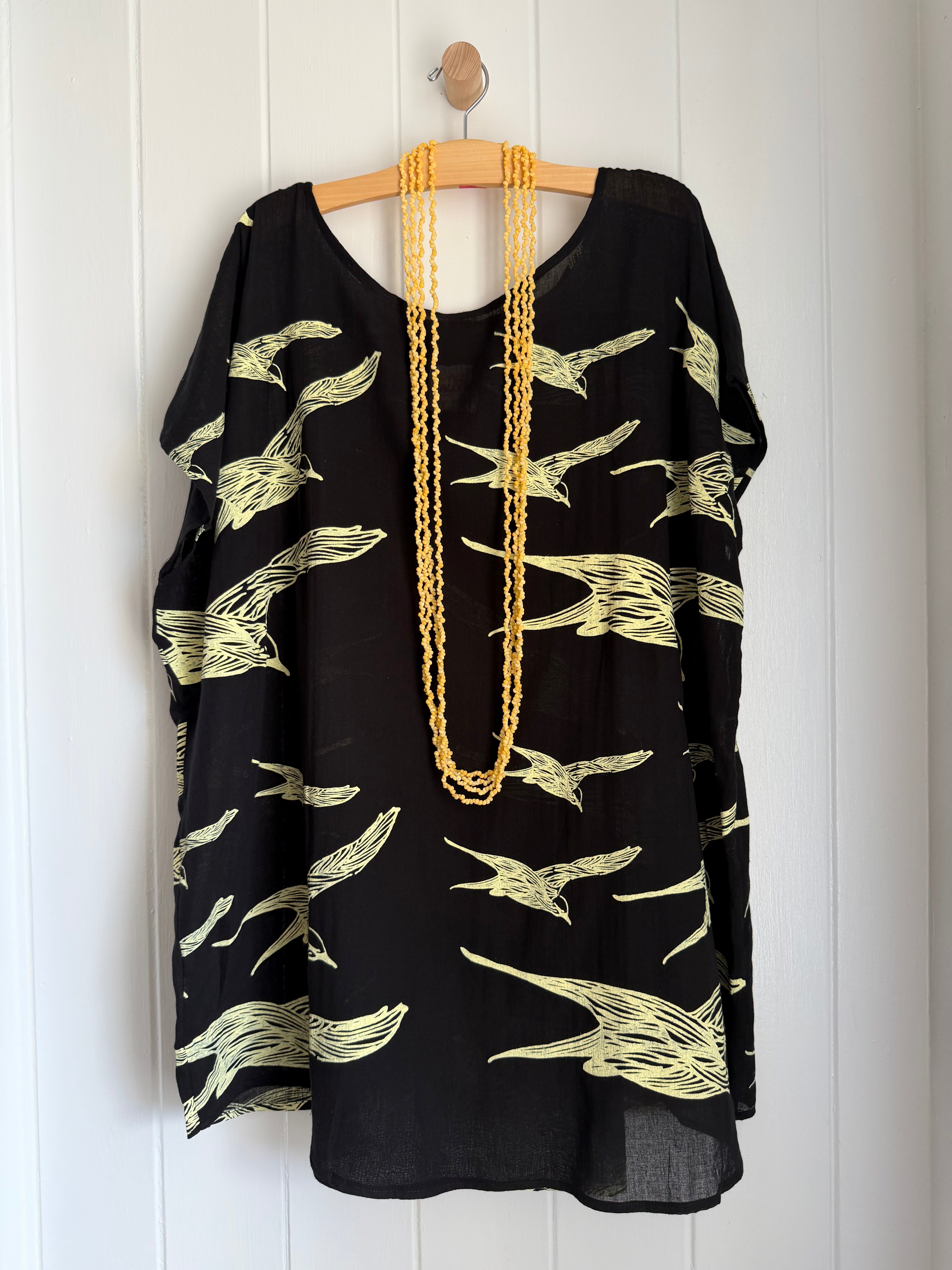 Light as sea mist, this simple top made of thin, soft pareu fabric is perfect for beating the Polynesian heat. This One size fits most garment can be worn as a dress or tunic and can be shortened up with a side knot.