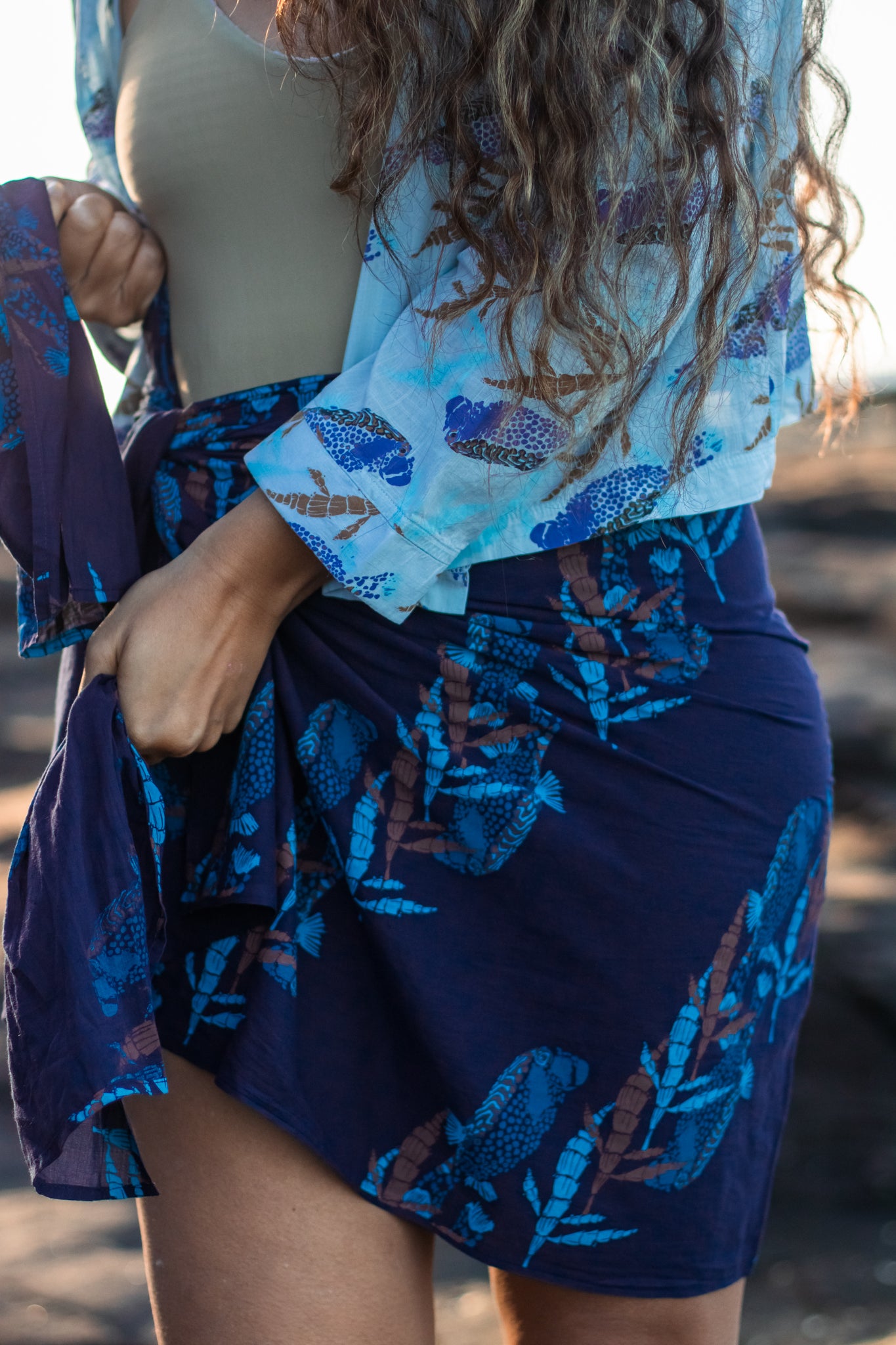 The forests and the oceans of Hawaiʻi teem with life. There are well over a thousand species of fish that occur in our islands and 20% of the reef fish are endemic. Along with the many delicious species of reef fish—a critical part of the Hawaiʻi diet—there are a handful of species that seem mostly decorative. One of these is the moa fish (aka pahu, spotted boxfish, Ostracion meleagris). A mostly peaceful reef dweller that typically grows up to six inches, the moa fish feeds on limu and tiny marine organisms. The boxy shape of its body is formed by fused scales and it’s beautifully covered in small dots. Moa color schemes and patterns were gifted by Kāne and Kanaloa, who gave all the fish their colors and markings. This account inspired the ʻōlelo for this design: Kikiko ʻia i ka nani o ka lipo - Marked in the beauty of the depths. Not just for the ocean, the term lipo in ʻōlelo Hawaiʻi also extends to the depths of the forest, the home of the other species featured here: hulumoa (aka kaumahana, Korthalsella latissima, or Hawaiʻi mistletoe). This herbaceous, parasitic plant grows on host trees (lama, koaiʻa, ʻolopua, kōpiko, ʻōhiʻa, koa). It has a “highly reduced” form (well under a foot tall) and is mostly flattened stems. At the nodes in the stems it bears clusters of tiny, also reduced flowers that give it the appearance of having spots as well. Linked in name and form, these two species may not be as large and well known as other Hawaiʻi organisms, but they play their own important roles in the ecosystems of sea and land; humble kūpuna in the wider ʻohana of life.