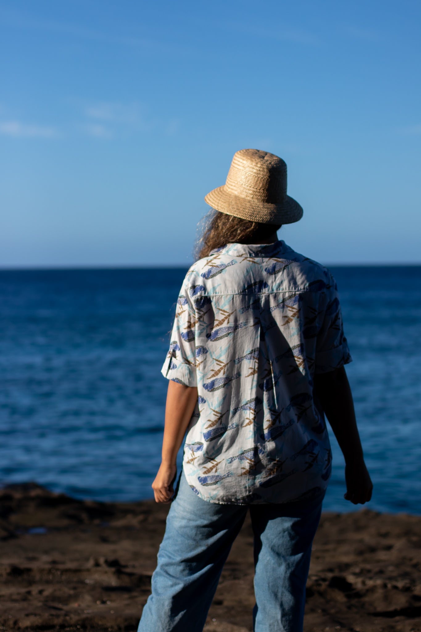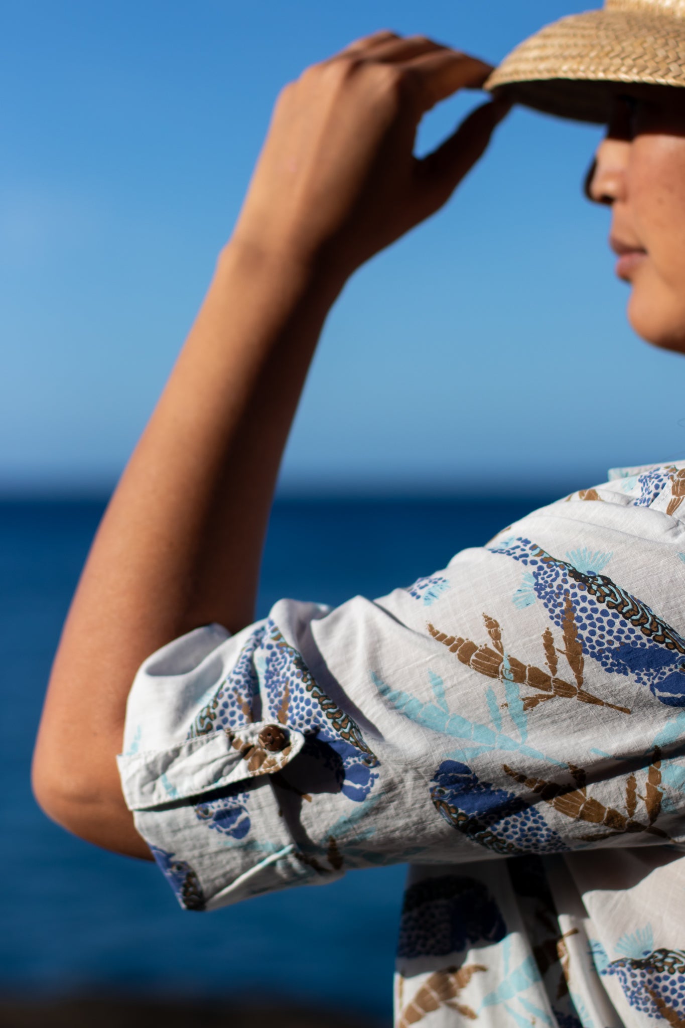 100% Organic cotton | Low v-neck | 3/4 sleeves with tab and button | ʻĀina-friendly dye methods | Designed in Hawaiʻi | Made in the USA