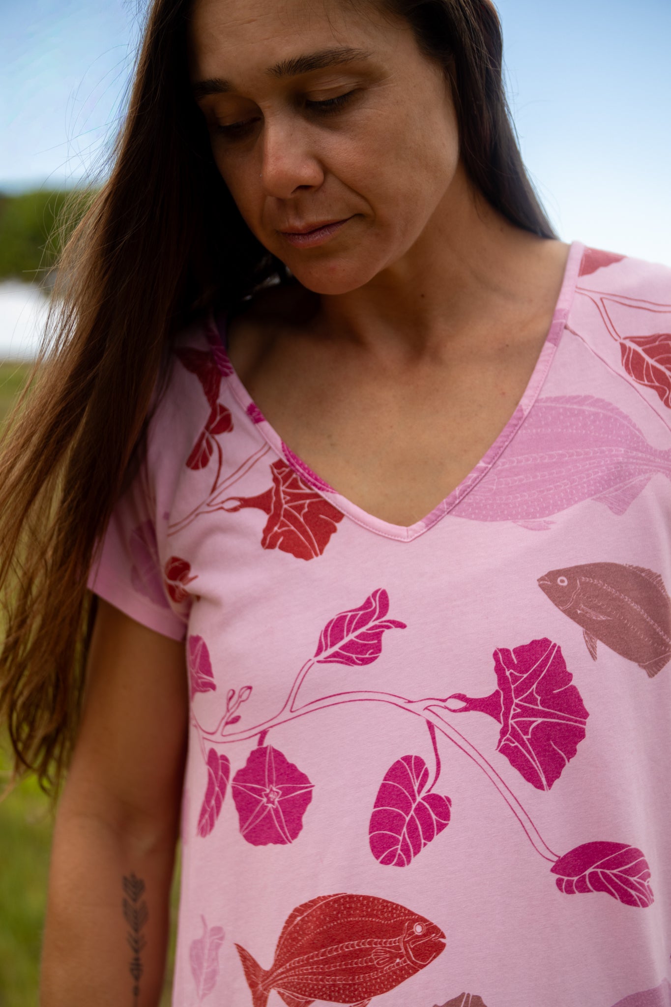 100% Organic Cotton | Vneck | Pockets | ʻĀina-friendly dye methods | Designed in Hawaiʻi nei | Made in the USA